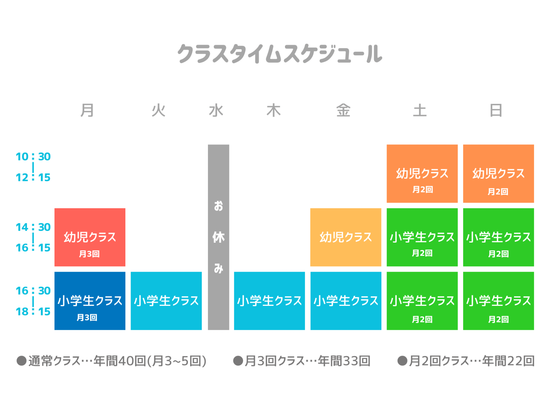 幼稚園年中〜年長のお子様が対象の曜日固定のクラスです。